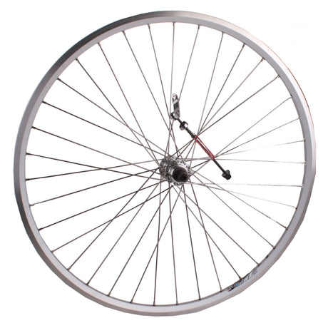 Achterwiel 28x1 5 8x1 3 8 aluminium velg zilver. uitval cassette naaf, 8 9 10 speed, spaak 14