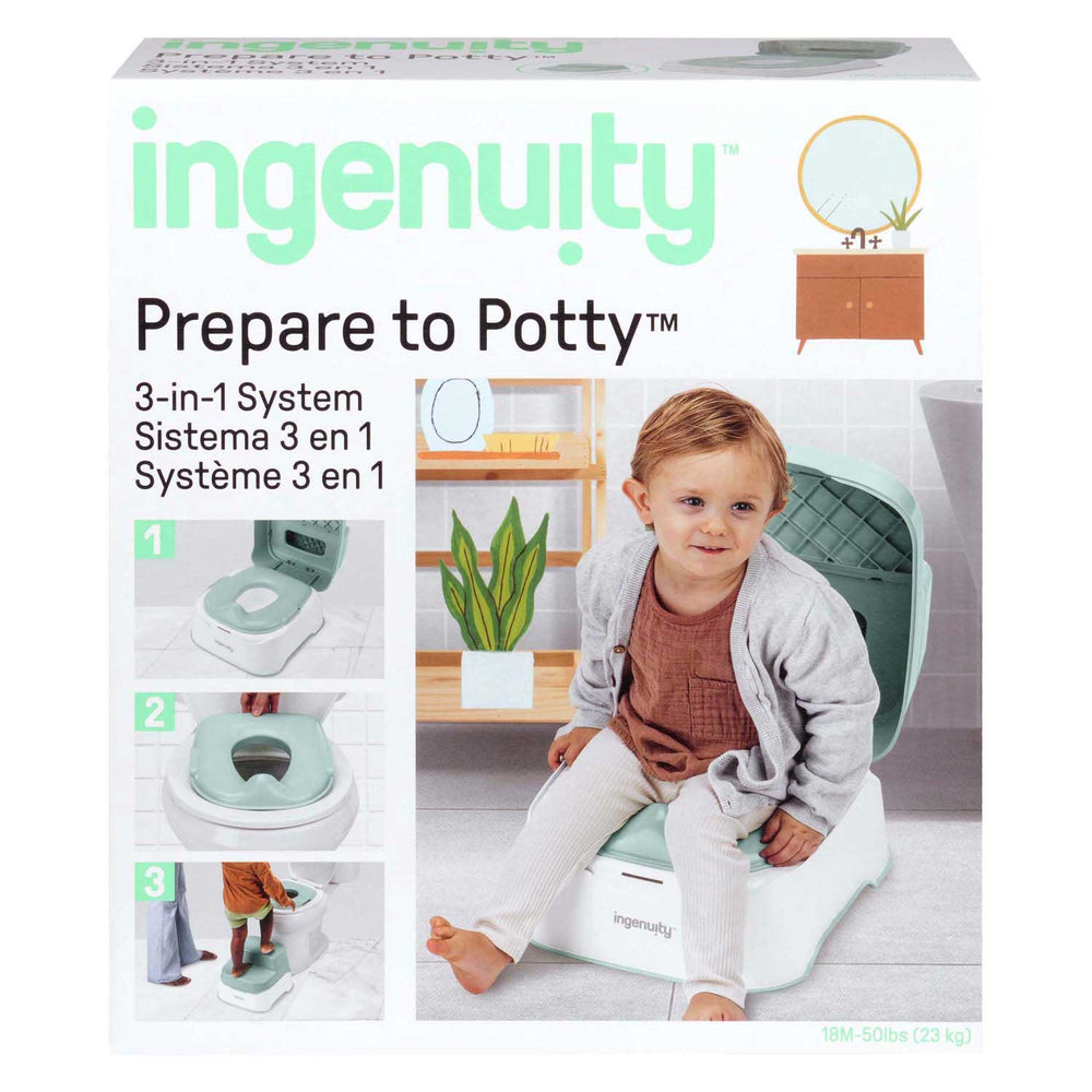 Maak de zindelijkheidstraining eenvoudiger met het Prepare to Potty 3-in-1 System van Ingenuity! Dit slanke systeem groeit mee met je soort en biedt drie functies in één: een kinderpotje, een toiletverkleiner en een dubbele opstap. Zo doorloopt je peuter elke fase van het zindelijk worden met gemak en comfort. Het Kinderpotje 3-in-1 is ontworpen voor gebruik en hygiëne. De uitneembare pot met handige schenktuit-investering maakt eenvoudig en voorkomt geknoei. Groot je soort klaar is voor de overstap naar het grote toilet, plaats je de toiletverkleiner eenvoudig op een standaard toilet. Het geïntegreerde spatscherm en handvatten zorgen voor extra stabiliteit en comfort. Met een compact formaat van 37 x 32 x 26,5 cm en een maximale belasting van 23 kg is dit 3-in-1 systeem een ​​must-have voor elke ouder! Kenmerken • 3-in-1 functie: kinderpotje, toiletverkleiner en dubbele opstap • Uitneembare pot met schenktuit voor eenvoudig reinigen • Toiletverkleiner met geïntegreerde spatscherm en handvatten • Past op de meeste ronde, ovale en D-vormige toiletten • Opstapje met antislipbodem voor extra veiligheid • Maximale belasting: 23 kg