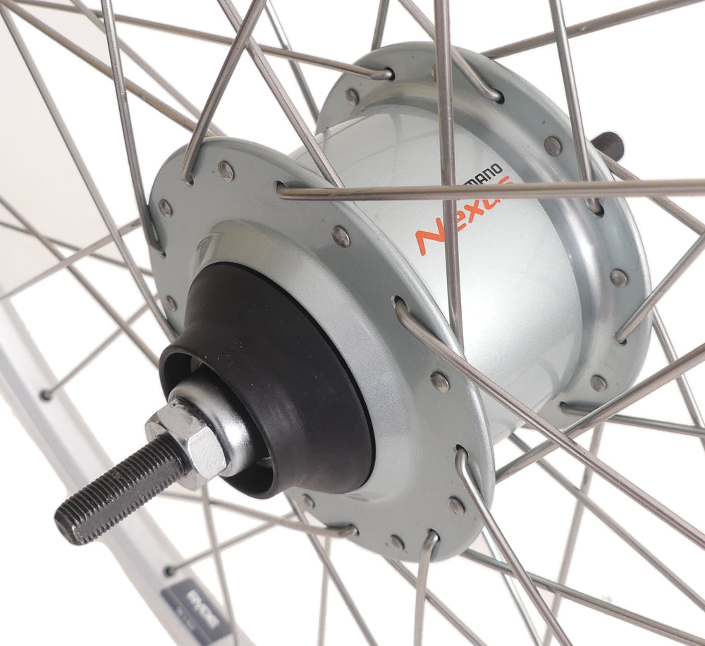 Achterwiel 28 nexus 8 rollerbrake naaf met met zilveren velg en rvs spaken is nabesteld en wordt verzonden zodra het weer op voorraad is.