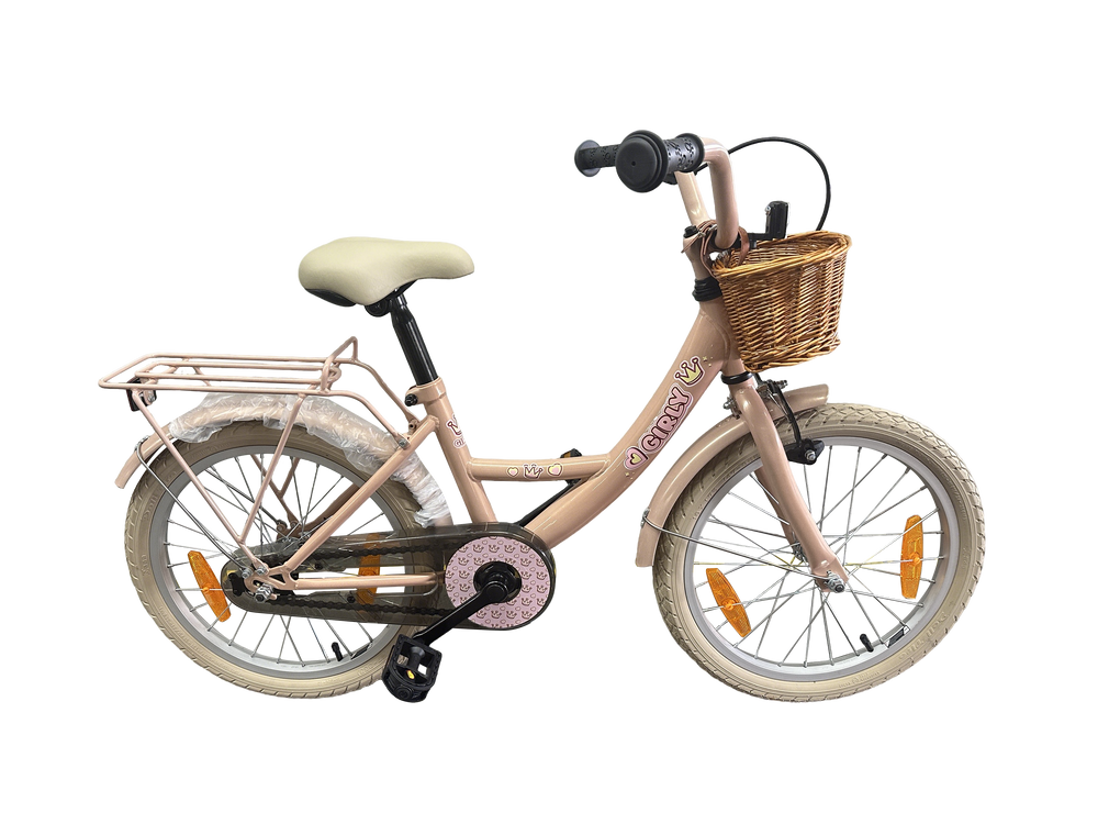 Bikefun kinderfiets girly 18 inch - met mandje en remnaaf - roze