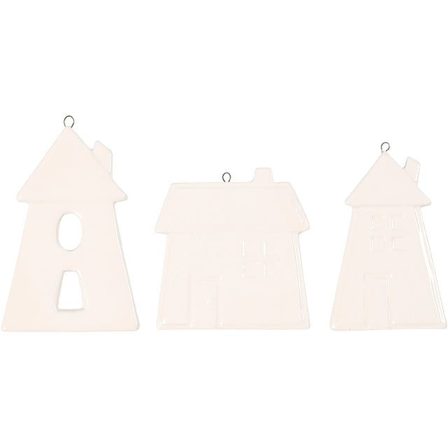 Creativ company hangende ornamenten, huizen, h: 7,6-9,7 cm, wit, 3 stuk 1 doos