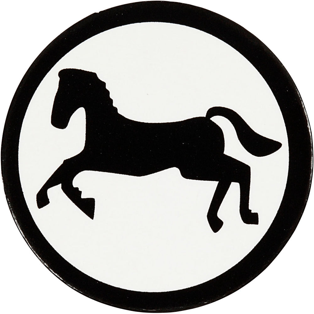 Creativ company label, paard, d 25 mm, wit zwart, 20 stuk 1 doos