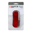 Dit 6V-3W Dynamo Fly achterlicht van LYNX voldoet aan de Duitse StVZO wetgeving. Het achterlicht is ontworpen met een standlichtfunctie, waardoor het nog 4 minuten blijft branden bij stilstand. Met een zichtbaarheid tot 600 meter, zorgt dit achterlicht voor optimale veiligheid. Het achterlicht is geschikt voor zowel flankdynamo als naafdynamo.