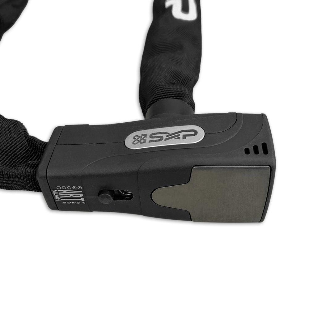 Dit ART 2 alarm kettingslot van SXP zal dieven afschrikken wanneer ze proberen een fiets of fatbike te stelen. Het kettingslot is namelijk voorzien van een ingebouwd alarmsysteem, welke in/uit te schakelen is middels een simpele draaibeweging met de sleutel. Eenmaal ingeschakeld, zal het alarm aanslaan door beweging van het slothuis. Bij de eerste bewegingen zal het slot beginnen met tien waarschuwingspieptonen. Blijft het kettingslot vervolgens alsnog bewegen? Dan zal het alarm geactiveerd worden, waarbij het volume oploopt tot 110 decibel. Perfect, wanneer de tweewieler geparkeerd staat in een gebied met een hoog diefstalrisico. Is het diefstalrisico minimaal? Dan is het alarm simpel uit te schakelen, om te vertrouwen op de kracht van het kettingslot.   Dit krachtige ART 2 goedgekeurde kettingslot heeft een geharde stalen slothuis, welke bestand is tegen lockpicken, zagen en boren. Dit in combinatie met de 8.5 millimeter dikke vierkante gelegeerde stalen schakels, maakt het slot nog sterker. Om frameschade te voorkomen tijdens het gebruik van het kettingslot, zijn de kettingschakels omhult met een zachte nylon hoes. Verder is de slotcilinder middels een verschuifbaar afdekkapje af te sluiten van vuil en vocht, zodat deze schoon blijft en werking behoudt. Wordt geleverd met 2 sleutels. Met schuifkaart. Werking alarm Startpositie: Het kettingslot is geopend, waarbij de slotpen uit het slothuis is. Alarmmodus inschakelen Steek de slotpen in het slothuis en draai de sleutel 180 graden (op slot). Hoor je een pieptoon? Dan wordt over 15 seconden de alarmmodus geactiveerd, de sleutel kan nu uit het slothuis. Na 15 seconden zal er een 2de pieptoon klinken om te bevestigen dat vanaf dit moment het kettingslot zal alarmeren bij beweging. Hoor je geen pieptoon? Draai de sleutel dan 180 graden (slot open) en opnieuw 180 graden (op slot) terug. Nu zul je de pieptoon wel horen en zal over 15 seconden de alarmmodus geactiveerd worden, de sleutel kan nu uit het slothuis. Na 15 seconden zal er een 2de pieptoon klinken om te bevestigen dat vanaf dit moment het kettingslot zal alarmeren bij beweging. Alarmmodus uitschakelenSteek de slotpen in het slothuis en draai de sleutel 180 graden (op slot). Hoor je een pieptoon? Draai de sleutel dan 180 graden (slot open) en opnieuw 180 graden (op slot) terug. Nu zul je geen pieptoon horen. De alarmmodus is uitgeschakeld. Hoor je geen pieptoon? Dan is de alarmmodus uit. Bekijk hier de video: https://youtu.be/HJ7pWBdVQgU