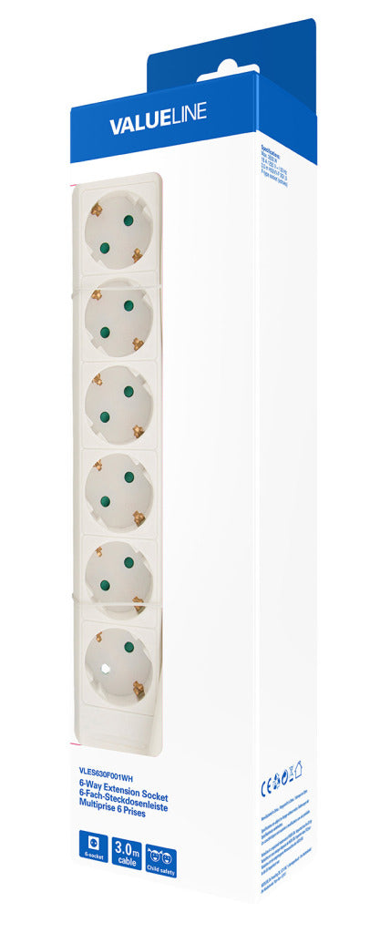 Valueline vles630f001wh stekkerdoos 6-wegs 3.00 m wit