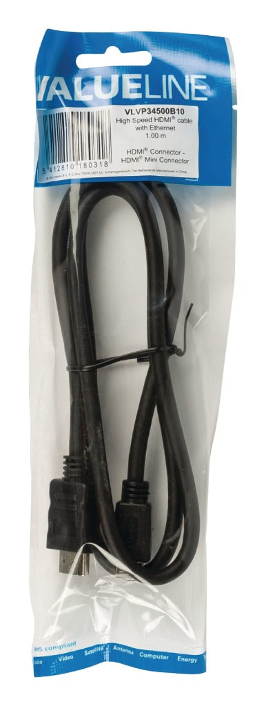 Valueline vlvp34500b10 high speed hdmi kabel met ethernet hdmi - hdmi mini-connector 1,00 m zwart