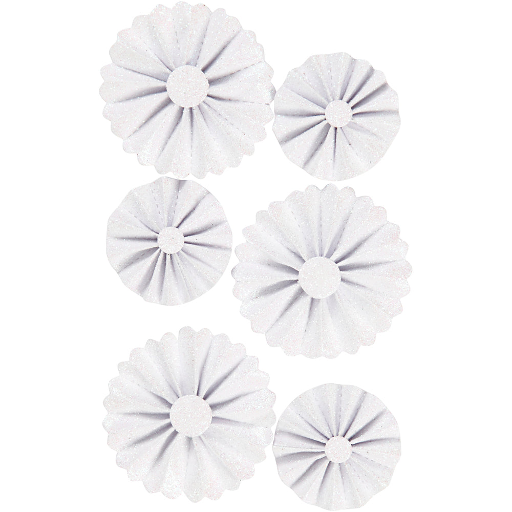 Vivi gade rosettes, d 35+50 mm, wit glitter, 6 stuk 1 doos
