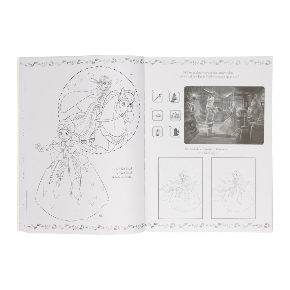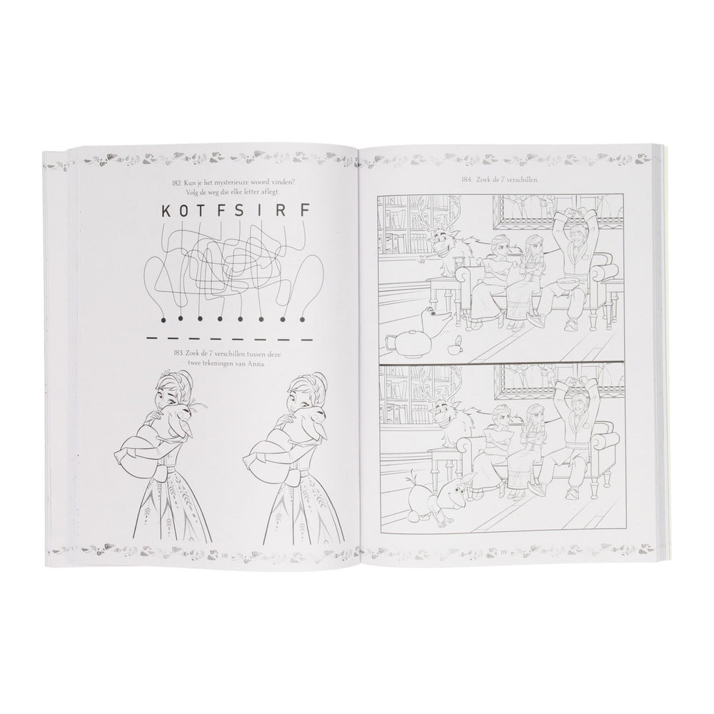 Spelletjes- en activiteitenboek met 365 leuke spelletjes en kleurplaten in Frozen-thema.