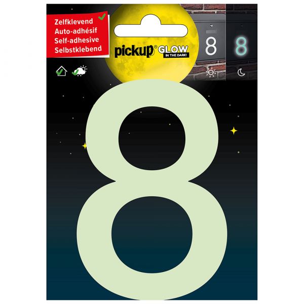 Glow in the dark nummer 8 - 100 mm zelfklevend.