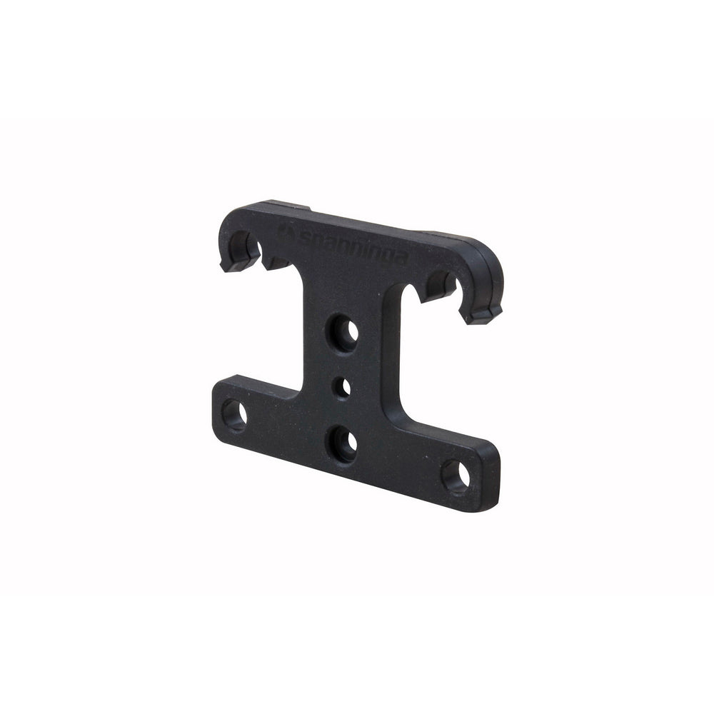 Een zwarte beugel voor onder het zadel om een achterlicht aan te bevestigen. Gemaakt van aluminium, heeft deze beugel een afmeting van 4 x 6 x 1 cm (L x B x H). De gelijkwaardige bevestigingsgaten hebben een diameter van 4 mm, terwijl de bevestigingsgaten aan de aanzienlijke een diameter hebben van 6 mm. De afstand tussen de buitenste gaten bedraagt 50 mm.