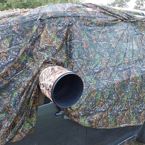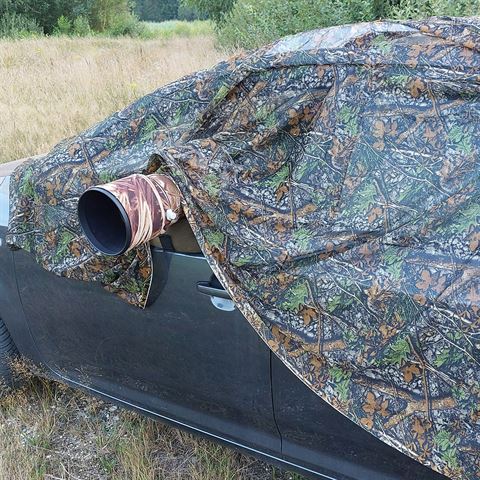 Als je vaak in het veld bent, merk je al snel dat vogels en zoogdieren erg mensenschuw zijn. Jezelf en je apparatuur camoufleren is de beste manier om met succes wilde dieren te fotograferen. Het basisidee is dat dieren ons niet meer zien of herkennen als mensen en zich daarom niet bedreigd voelen. Het gebruik van een schuiltent, een baghide of een camouflagenet kan dan heel nuttig zijn. Dit camouflagenet is groot genoeg om jou, je uitrusting, je camouflagetent of je auto te camoufleren. Natuurlijk kan het camouflagenet ook worden gebruikt om je schuilplaats nog beter te laten opgaan in de omgeving. Een groot voordeel van dit speciale net is het formaat: 1,5 x 4 meter, waardoor het ideaal is voor het camoufleren van je auto of voor gebruik tussen bomen of struiken. Ondanks het formaat is het net erg licht en kan het compact worden opgevouwen of opgerold.