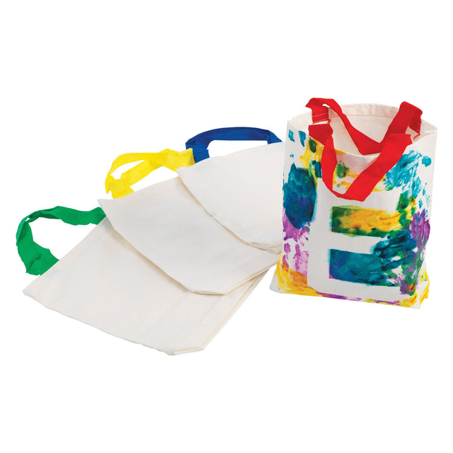 Kinderen zullen zich laten meeslepen door hun eigen speciale draagtassen te versieren! Ideaal voor vakantie- en zomerknutselwerk. • BLANK CANVAS: Personaliseer duurzame katoenen canvas draagtassen met verf, textielstiften, stempels, opstrijkstickers, patches, lijm en de meeste andere decoratie- en knutselproducten • WAT JE KRIJGT: Set van 12 canvas draagtassen, elk met dubbele riemen in 4 verschillende kleuren: blauw, geel, groen en rood. De draagtassen zijn 21,5 cm B x 21 cm H x 5,5 cm D • GEBRUIK: Bulkverpakking is ideaal voor leraren om te gebruiken met leerlingen in de klas, voor feestactiviteiten en cadeautjes, naschoolse- en zomerprogramma's, bejaardentehuizen, en zelfs thuis met kinderen om creatieve expressie te stimuleren. • VEILIG: Alle Colorations-producten zijn niet giftig en veilig voor kinderen