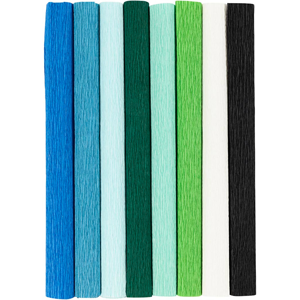 Creativ company crêpepapier, vel 25x60 cm, crêpe-verhouding: 180%, 105 gr, blauw groen harmonie, 8 vel 1 doos