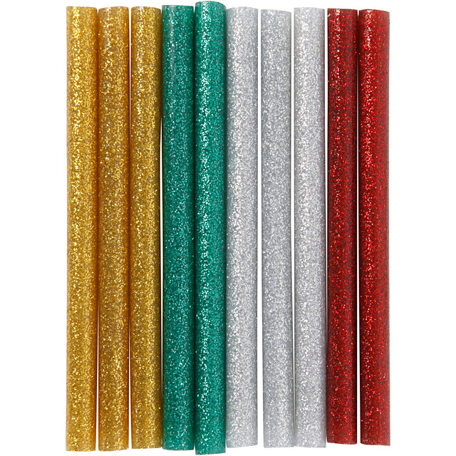 Creativ company lijmstiften mini, l: 10 cm, d 7 mm, glitter, goud, groen, rood, zilver, 10 stuk 1 doos