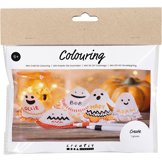 Creativ company mini hobbyset inkleuren, spookjes, zwart, lichtoranje, mid oranje, wit, 1 doos