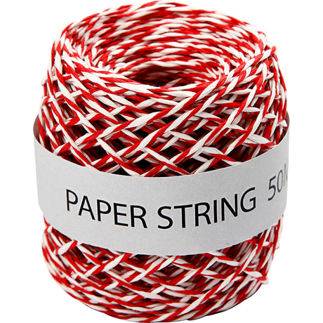 Creativ company papierkoord, dikte 1 mm, rood wit, 50 m 1 rol