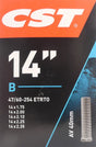 Binnenband CST AV40 14x1.75 - 2.35" is een binnenband van hoge kwaliteit geschikt voor verschillende buitenbanden. De binnenband heeft een inch wielmaat van 14" en een ventiel van het type Auto (Schrader) met een lengte van 40 mm.