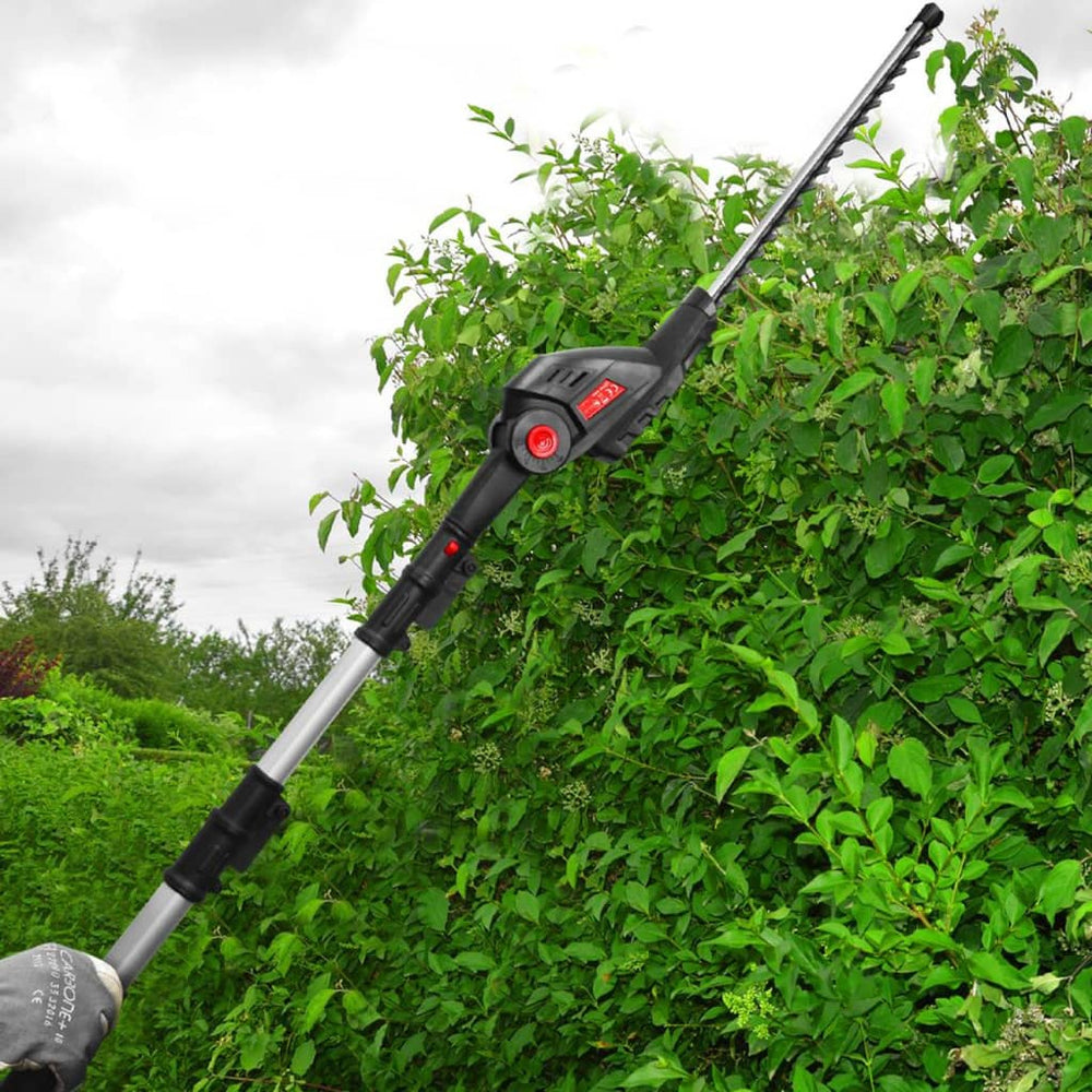 Met dit 4-in-1 oplaadbare multifunctionele tuingereedschap van ELEM Garden Technic kun je een compleet onderhoud van je tuin uitvoeren. Het heeft een telescopisch handvat van maximaal 160 cm en is te gebruiken als heggenschaar, takkenzaag, bladblazer en graskantensnijder.
