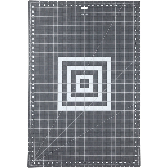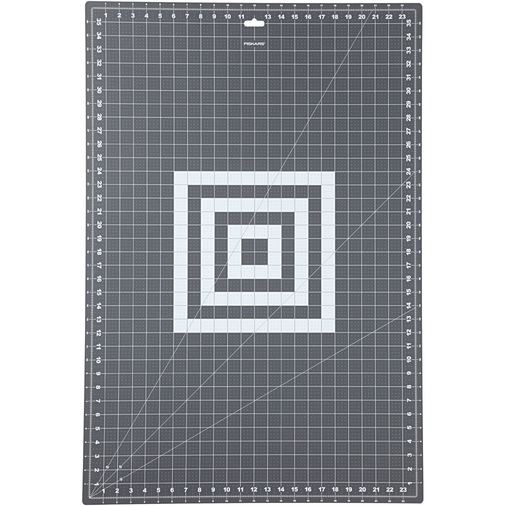Fiskars duurzame, zelfhelende, omkeerbare snijmat met rasterlijnen in cm, inches en hoeklijnen.