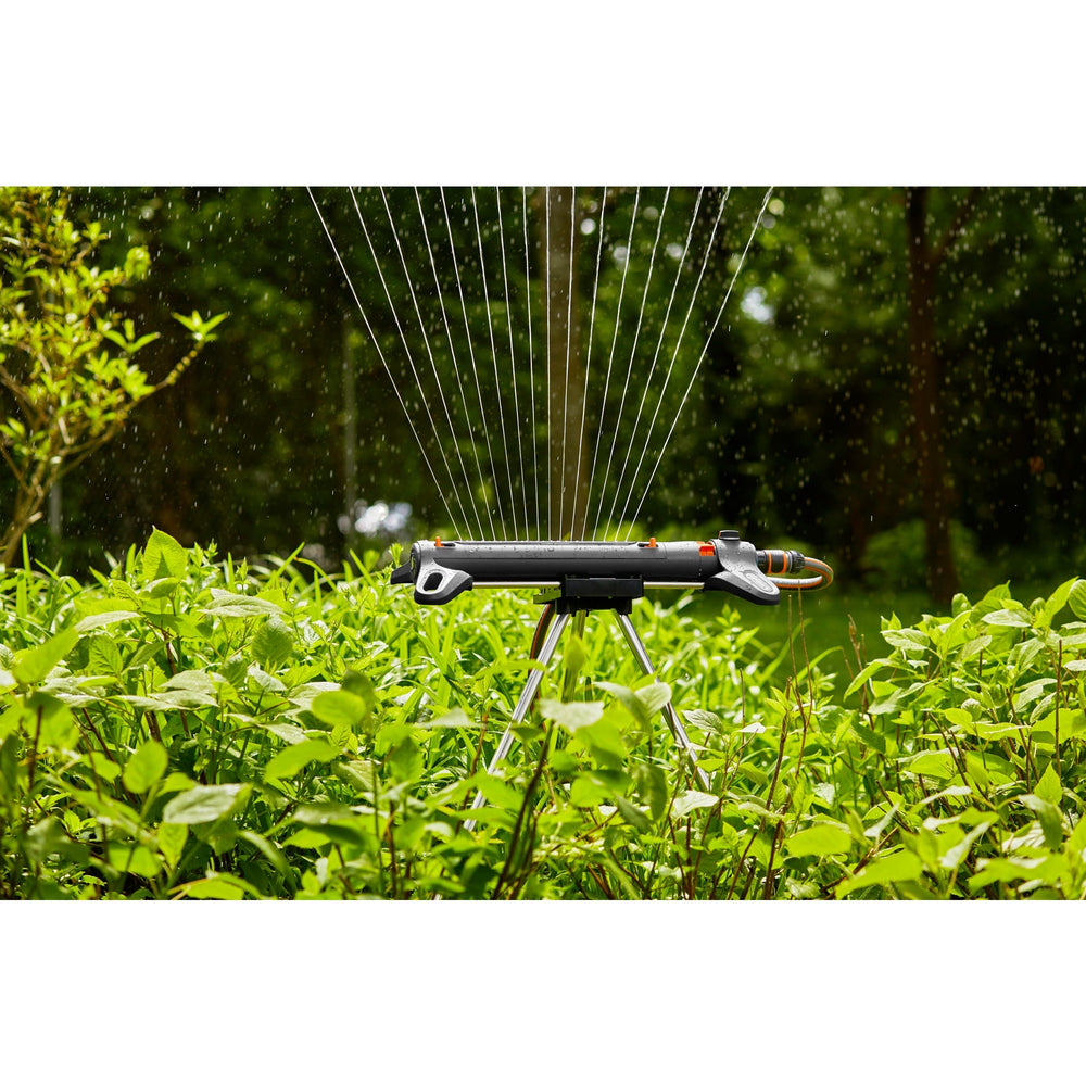 Het GARDENA Sproeierstatief verandert alle GARDENA cirkel-, zwenk-, nevel- en multisproeiers in hoogtesproeiers zodat je grotere planten gelijkmatig en van bovenaf kunt besproeien.