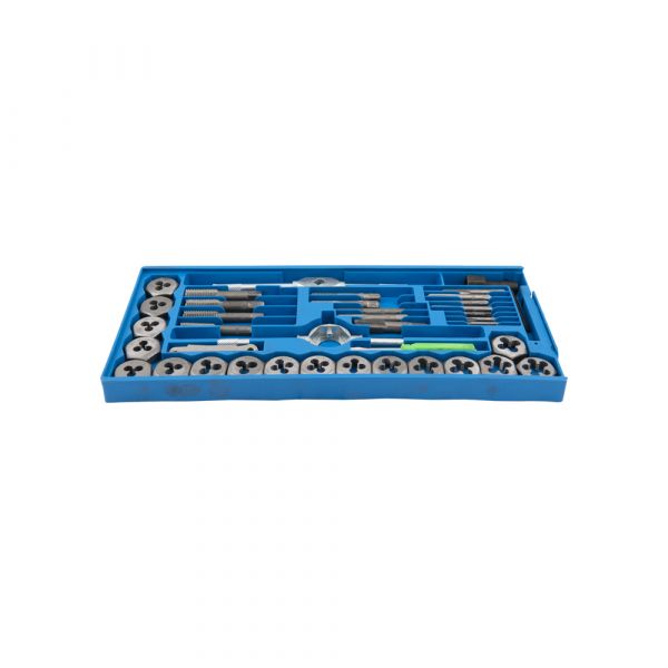 - Bestaande uit 17 verschillende tap en snij ijzers in maten van M3 tot en met M12 en 1/8NPT.