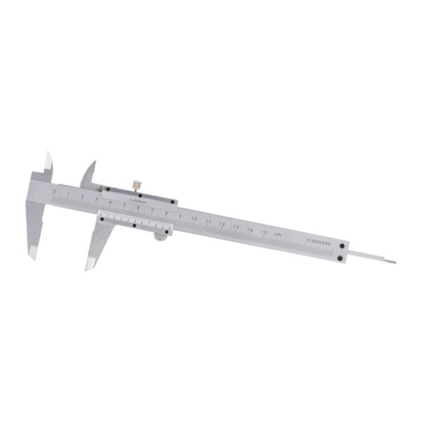 RVS schuifmaat met een meetbereik tot 15 cm. Deze luxe schuifmaat is gemaakt van roestvrij staal en heeft een duidelijke schaalverdeling. Het is een handig gereedschap om nauwkeurige metingen te doen.