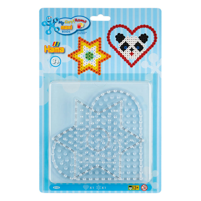 Hama strijkkralenbordjes Maxi in de vorm van een hart en een ster. De bordjes zijn alleen geschikt voor de maxi strijkkralen.