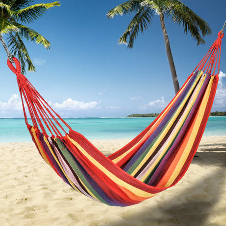 Hi hangstoel met voetensteun katoen canvas beige