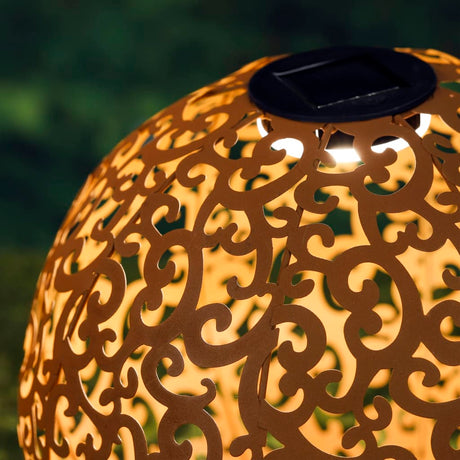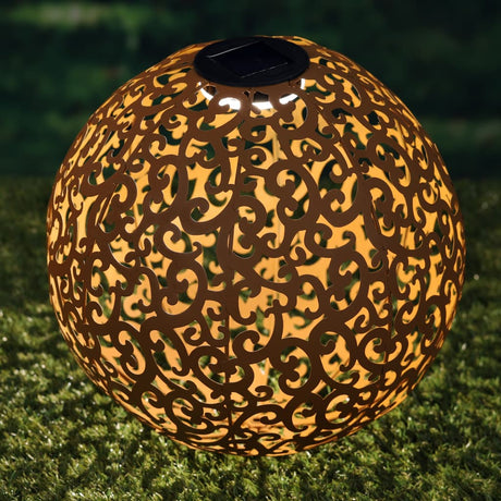 HI HI Tuinlamp solar LED bol 28,5 cm metaal bruin