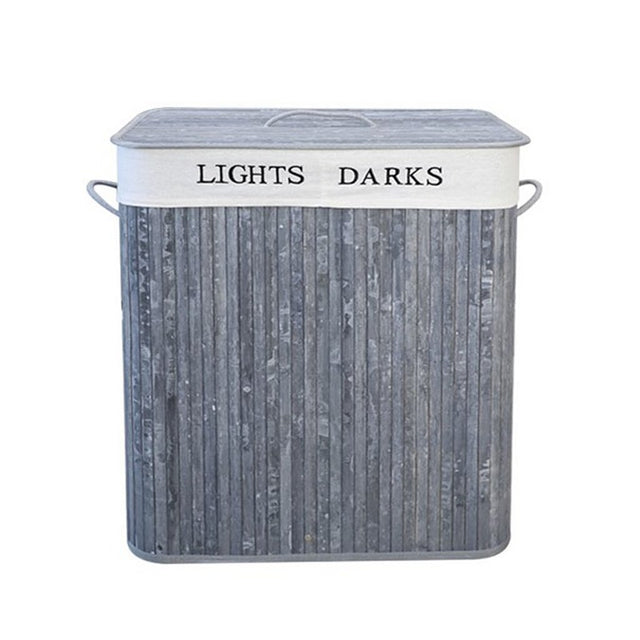 Homestyle pro rechthoekige bamboe wasmand + tekst 52x32x63 cm grijs wit