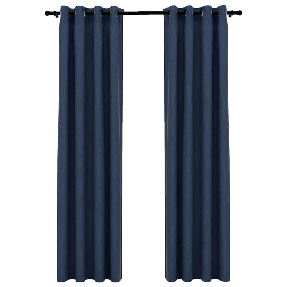 Vidaxl gordijnen linnen-look verduisterend ogen 2 st 140x225 cm blauw