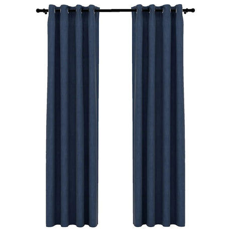 Vidaxl gordijnen linnen-look verduisterend ogen 2 st 140x225 cm blauw