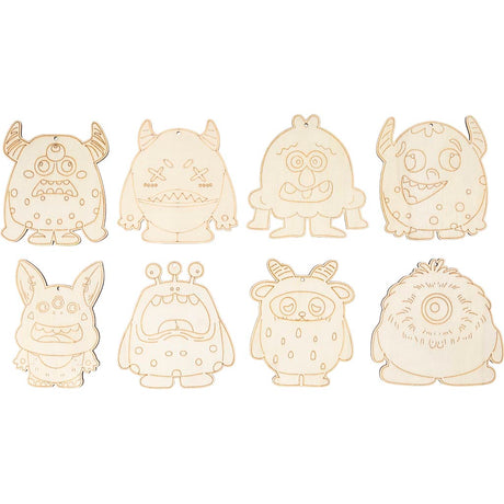 Creativ company houten figuren, monsters, h: 12,4 cm, dikte 3 mm, 8 stuk 1 doos