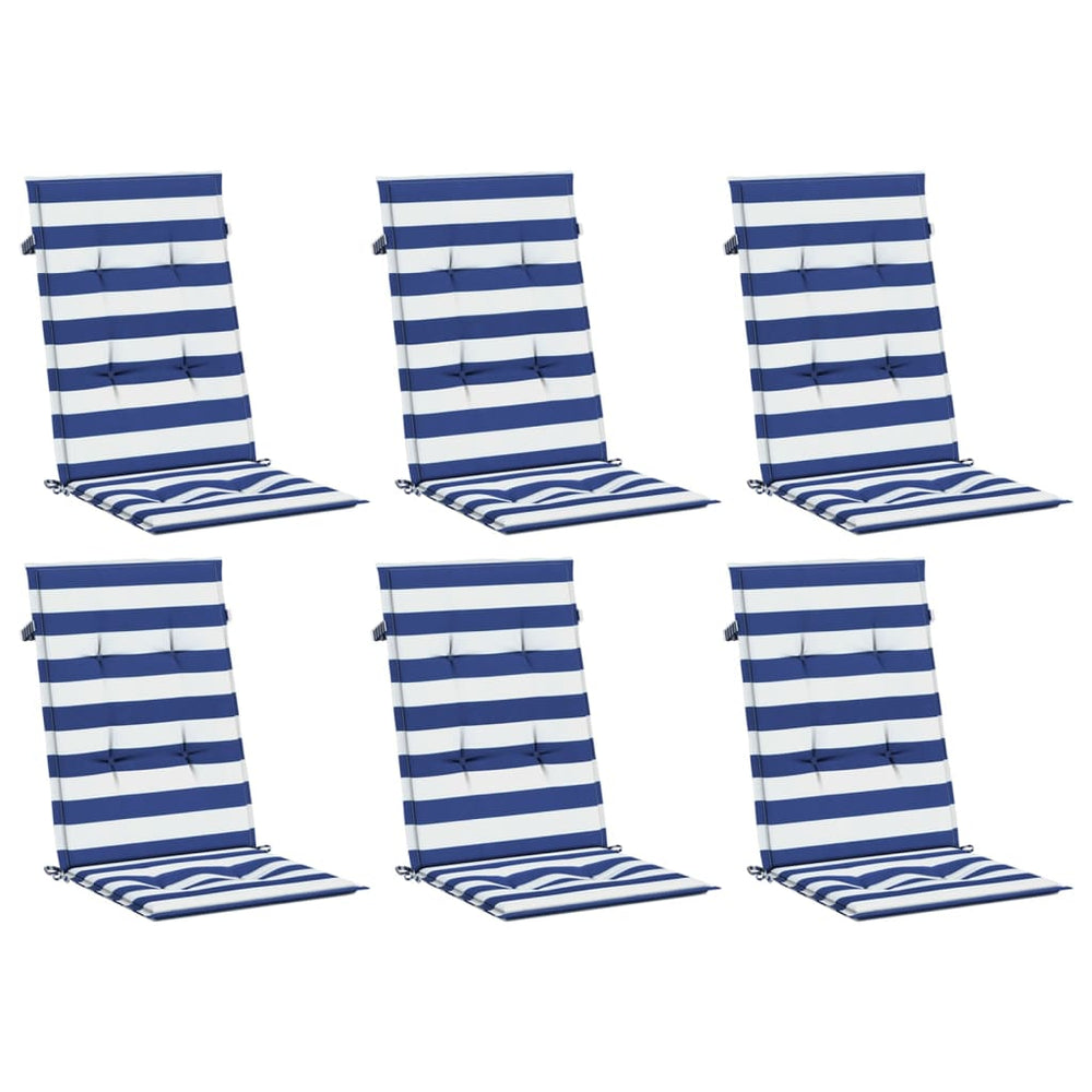 Vidaxl stoelkussens 6 st hoge rug gestreept stof wit en blauw
