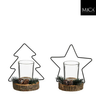 Theelicht houder ster boom zwart 2 assorti - l14xb8,5xh15,5cm