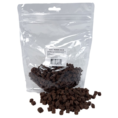 De zijn smaakvolle beloningssnacks met eend en kip, perfect voor tijdens het trainen of als verantwoord tussendoortje. Dankzij hun compacte formaat en zachte structuur zijn ze makkelijk te kauwen en ideaal voor snel belonen. De snacks zijn rijk aan eiwitten en bevatten geen overbodige toevoegingen - gewoon handig, lekker en effectief.