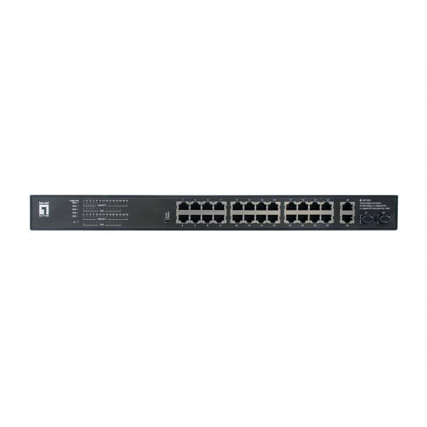 Levelone gep-2821 28-port gigabit poe switch, 24x poe outputs, 2x gigabit rj45, 2x gigabit sfp, 1u