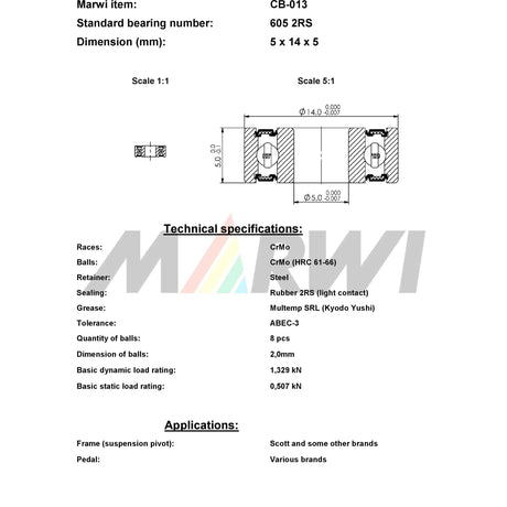 Marwi union kogellager cb-013 605 2rs 5x14x5