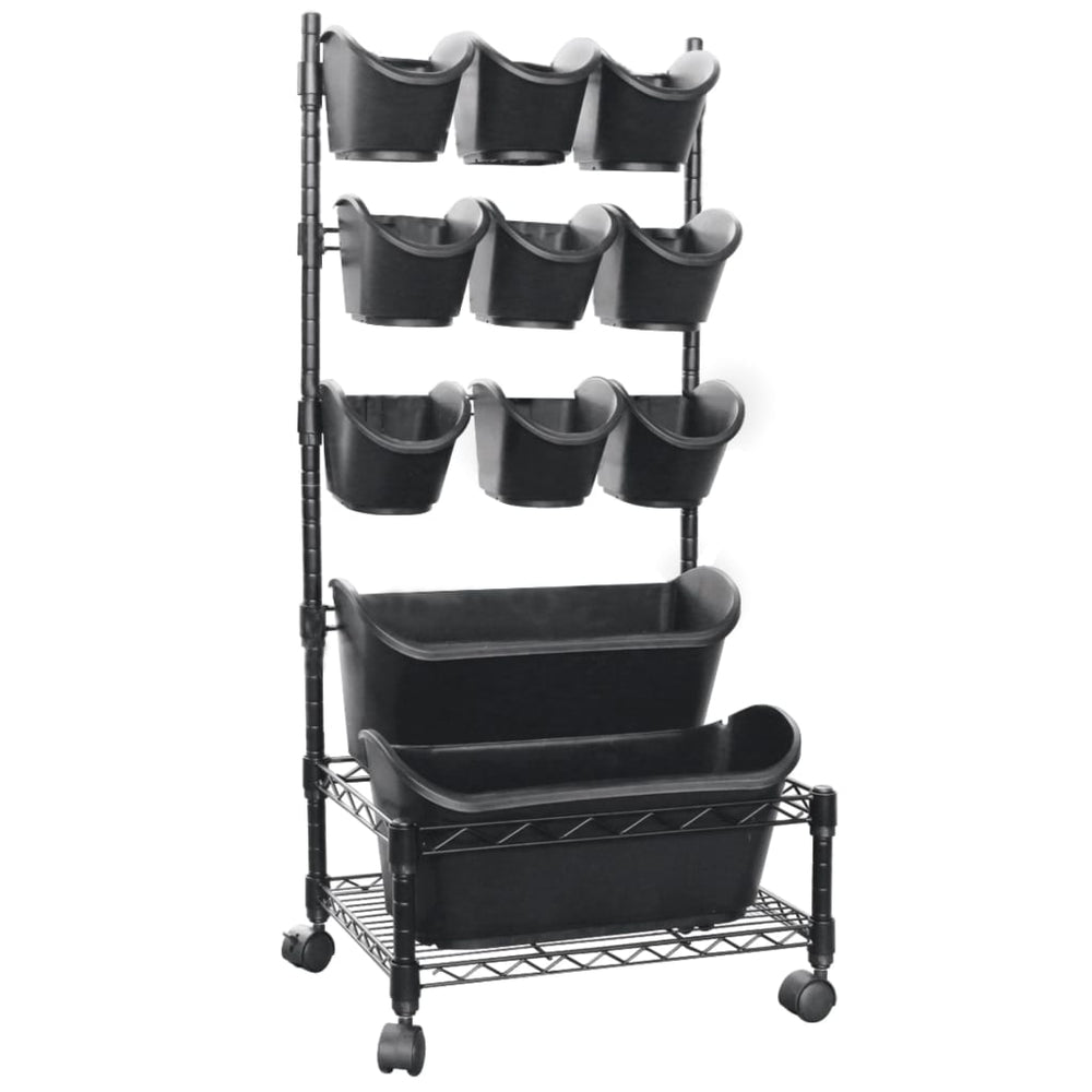 - 11-delige bloempottenset met verrijdbaar frame