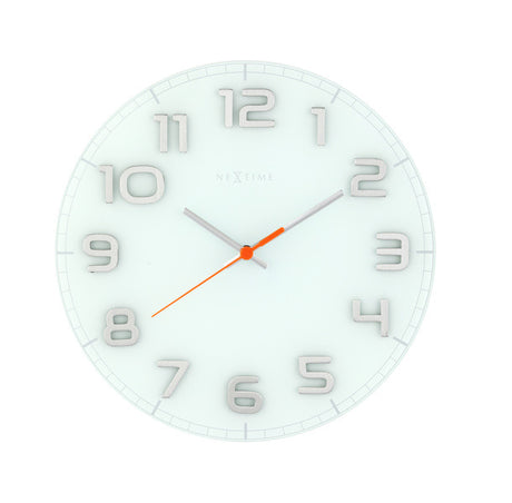 Nextime ne-8817wi wandklok dia. 30 x 3.5 cm, glass, white, 'classy round'