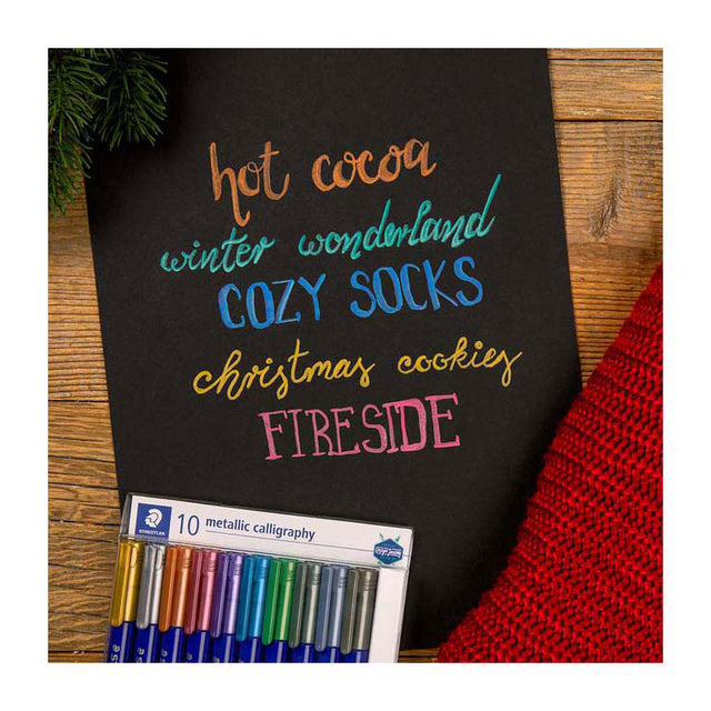 Set van 10 metallic kalligrafiepennen. Lijnbreedte ca 2,8 mm.