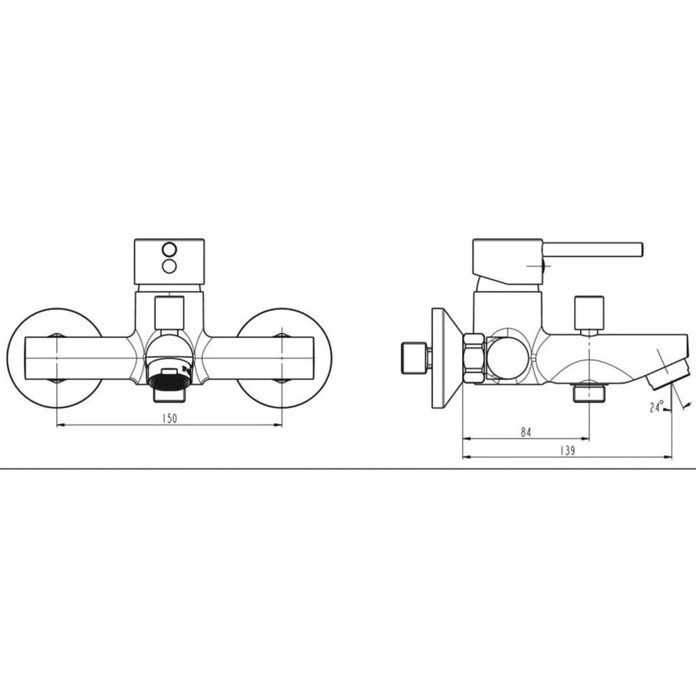 • Afstand tussen bevestigingsgaten: 150 mm