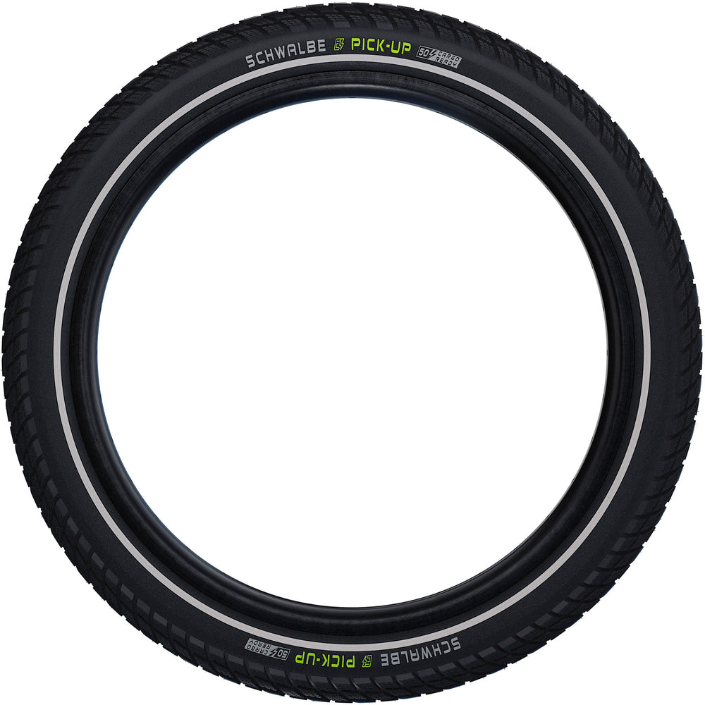 "De Schwalbe Pick-Up is de eerste echte cargo band van Schwalbe. Met zijn extreem stabiele dubbele karkas biedt deze band uitstekende lekbescherming en veiligheid onder zware belasting. Het ADDIX E compound zorgt voor buitengewoon goede rijprestaties en grip, zelfs in de 20" uitvoering. De band is gecertificeerd volgens ECE-R75 en is daarmee de optimale keuze voor alle e-cargo bikes. Met de Schwalbe Pick-Up kun je met vertrouwen en gemak jouw lading vervoeren." Product specificaties - Merk: Schwalbe - Model: Pick-Up - Inch maat: 26 x 2.35" - Etrto maat: 60-559 - Gewicht: 1250g - Kleur: Zwart - Super Defense - TwinSkin - Addix E Compound - ECE-R75 Certificatie - HS 609 - 2x 67 EPI - Clincher - Maximale druk (PSI): 65 - Maximale druk (Bar): 4.5 - Bandtype: Draadband - Banddiameter ("): 24" - Bandbreedte: 55 - Binnen of buitenband: Buitenband - (ETRTO) Bandenmaat: 55 - 507