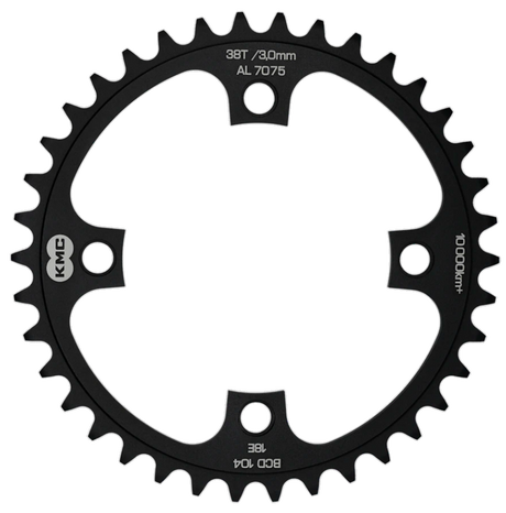 KMC tandwiel 38T, aluminium 1 2x1 .BCD 104mm. kettinglijn 3.0mm single speed