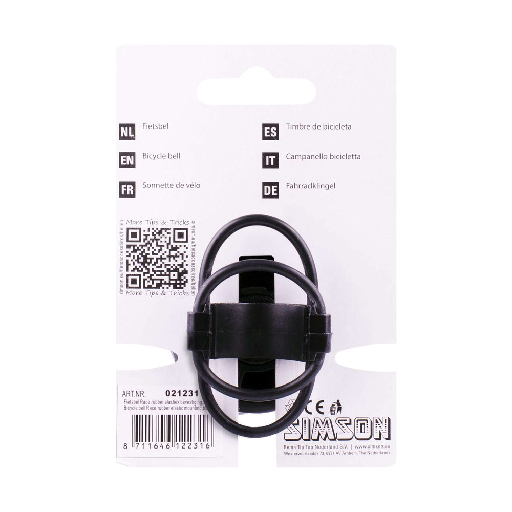 Simson fietsbel Race zwart elastiek bevestiging op kaart