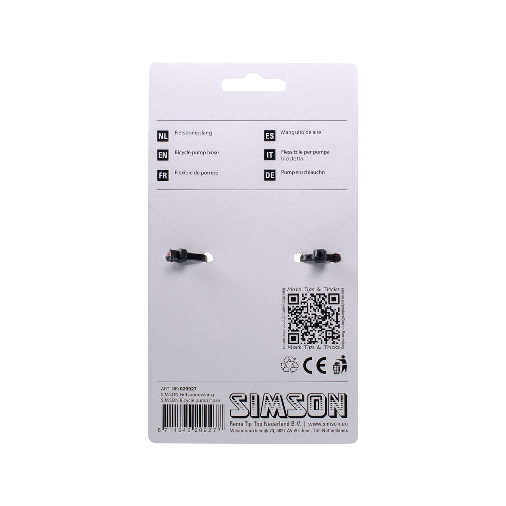 Deze Simson pompslang is een kwalitatief hoogwaardige traditionele pompslang, geschikt voor de Jumbo Pomp. De slang is voorzien van een knijpklem en is geschikt voor de standaard Hollandse- en Dunlop ventielen. De slang heeft een lengte van 60 centimeter en is eenvoudig op de Jumbo pomp te bevestigen door middel van een schroefverbinding.