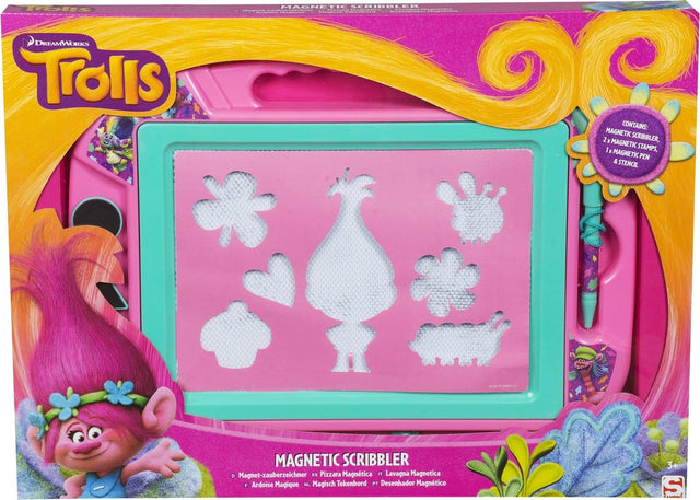 Bongers speelgoed trolls magische tekenbord, met sjablonen van de trolls als voorbeeld