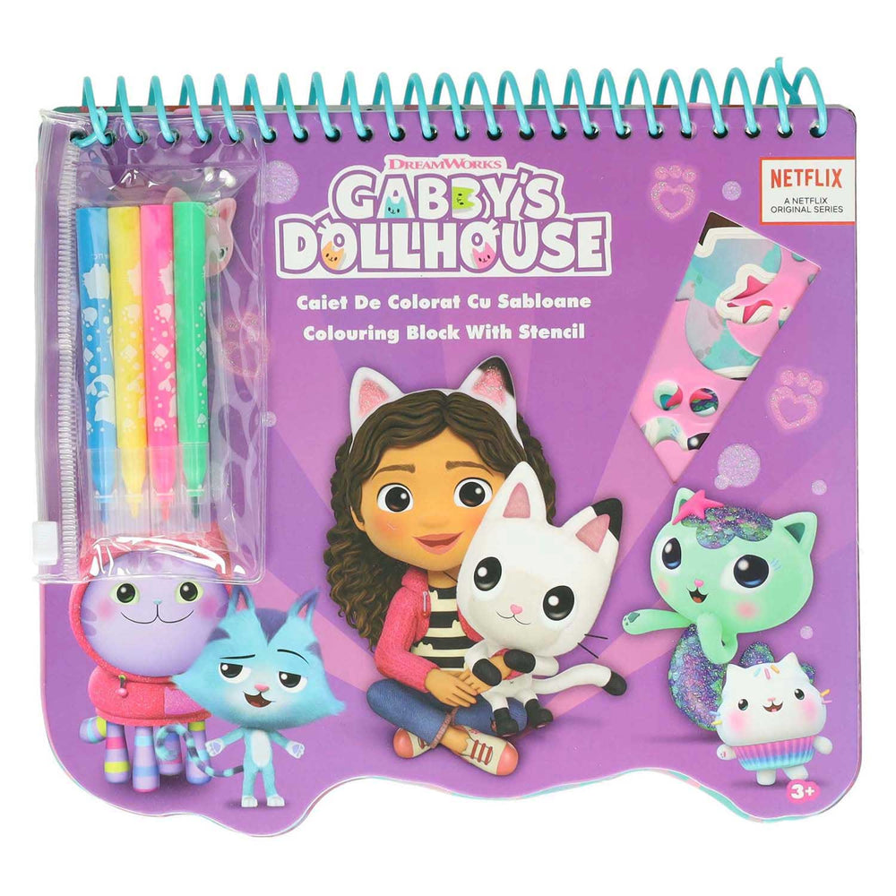 Gabby's poppenhuis kleurblok met stiften en sjablonen