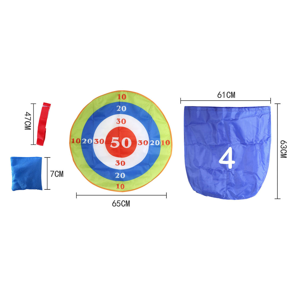 3 in 1 klassieke buitenactiviteiten. Inhoud: 1 doelwit, 3x werpzakjes, 3x elastieken, 4x zak om mee te zaklopen.