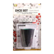 De dobbelset bevat een beker, 5 dobbelstenen en een scoreblok.